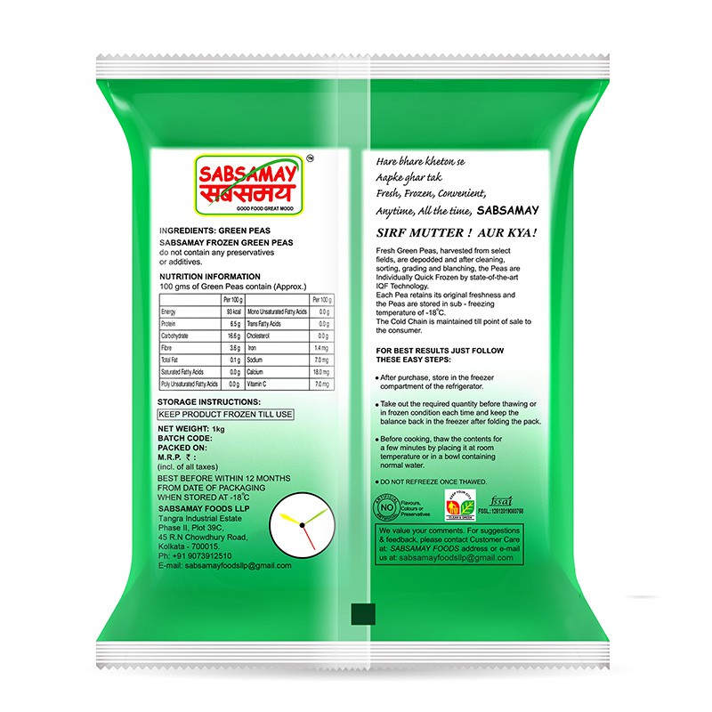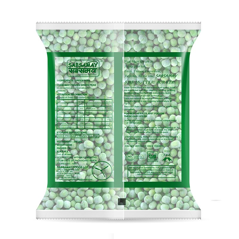 Sab Samay Green Peas are natural and free from any added colour, preservatives or additives.